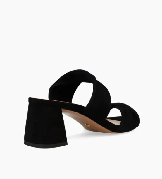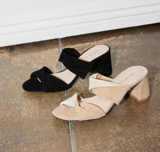Elegant u0026amp; easy dual twist slide sandal on 2.1″ block heel. Suede upper u0026amp; leather outsole.